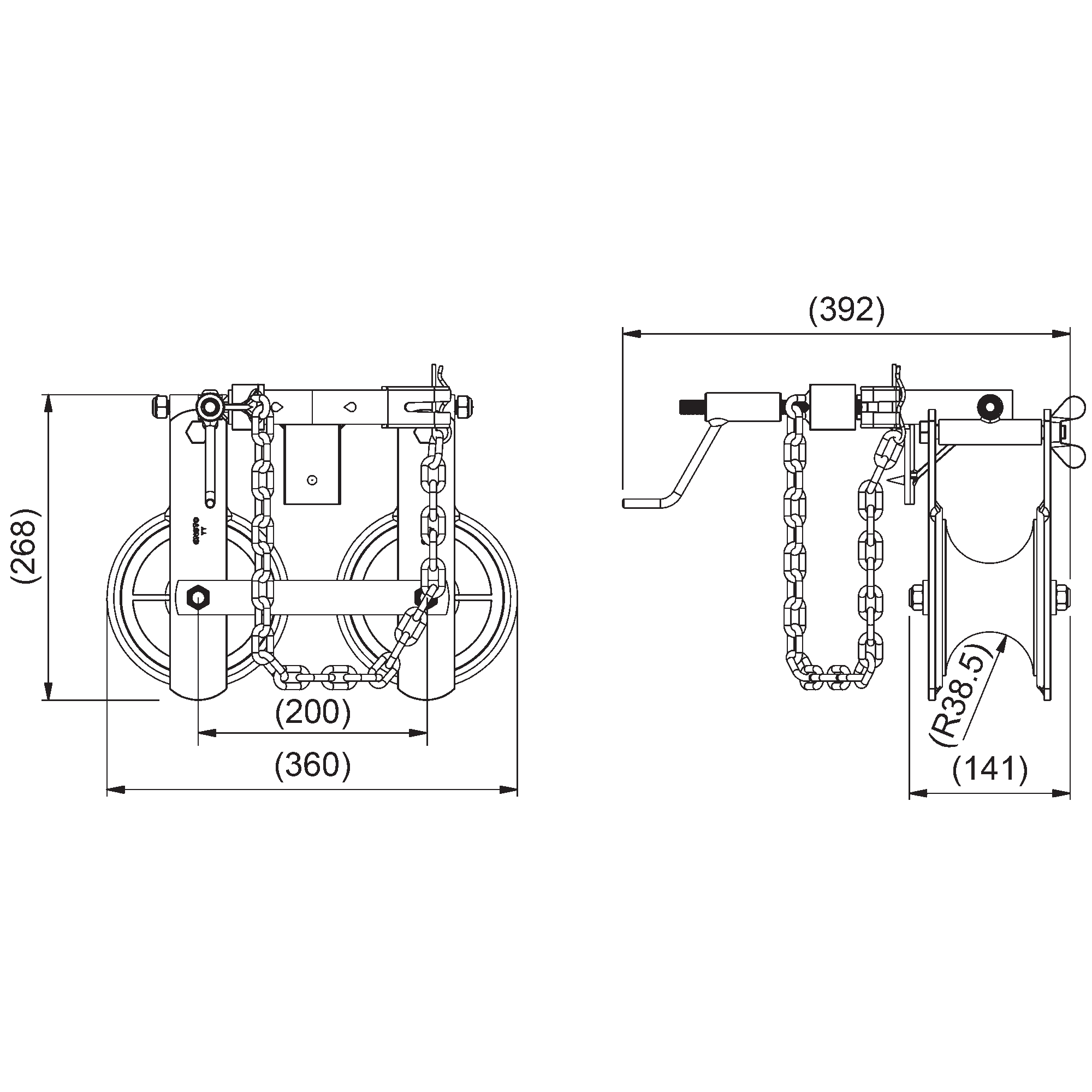 For LV AB cables with two wheels and a chain fixing.