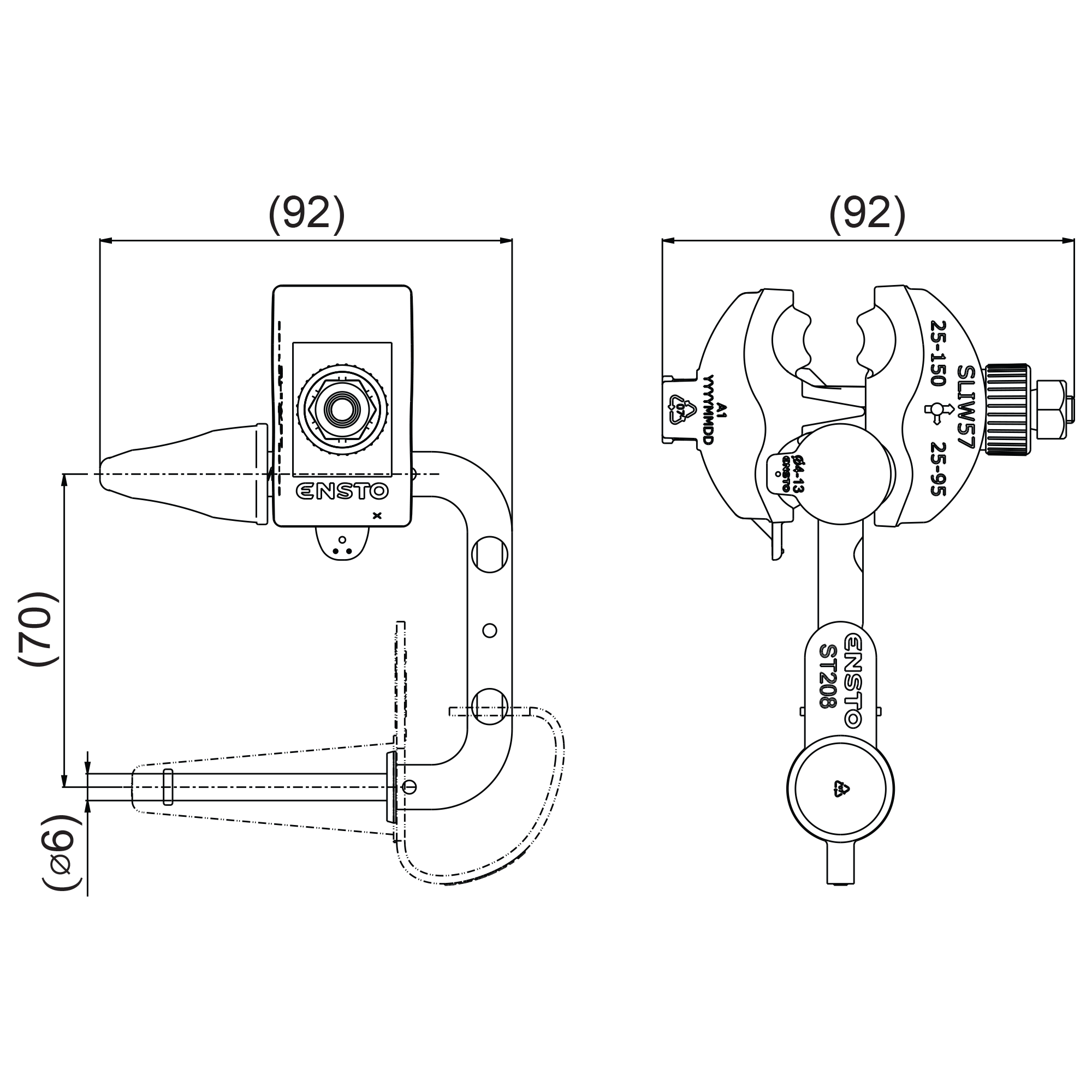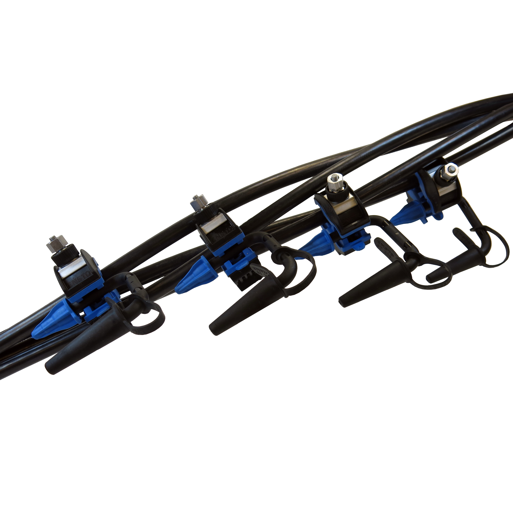 ST208.57 is used to prepare a point for temporary earthing in an ABC cable. Comes with an insulation piercing connector SLIW57. Set includes 4 pcs SLIW57 and 4 pcs earting bails.